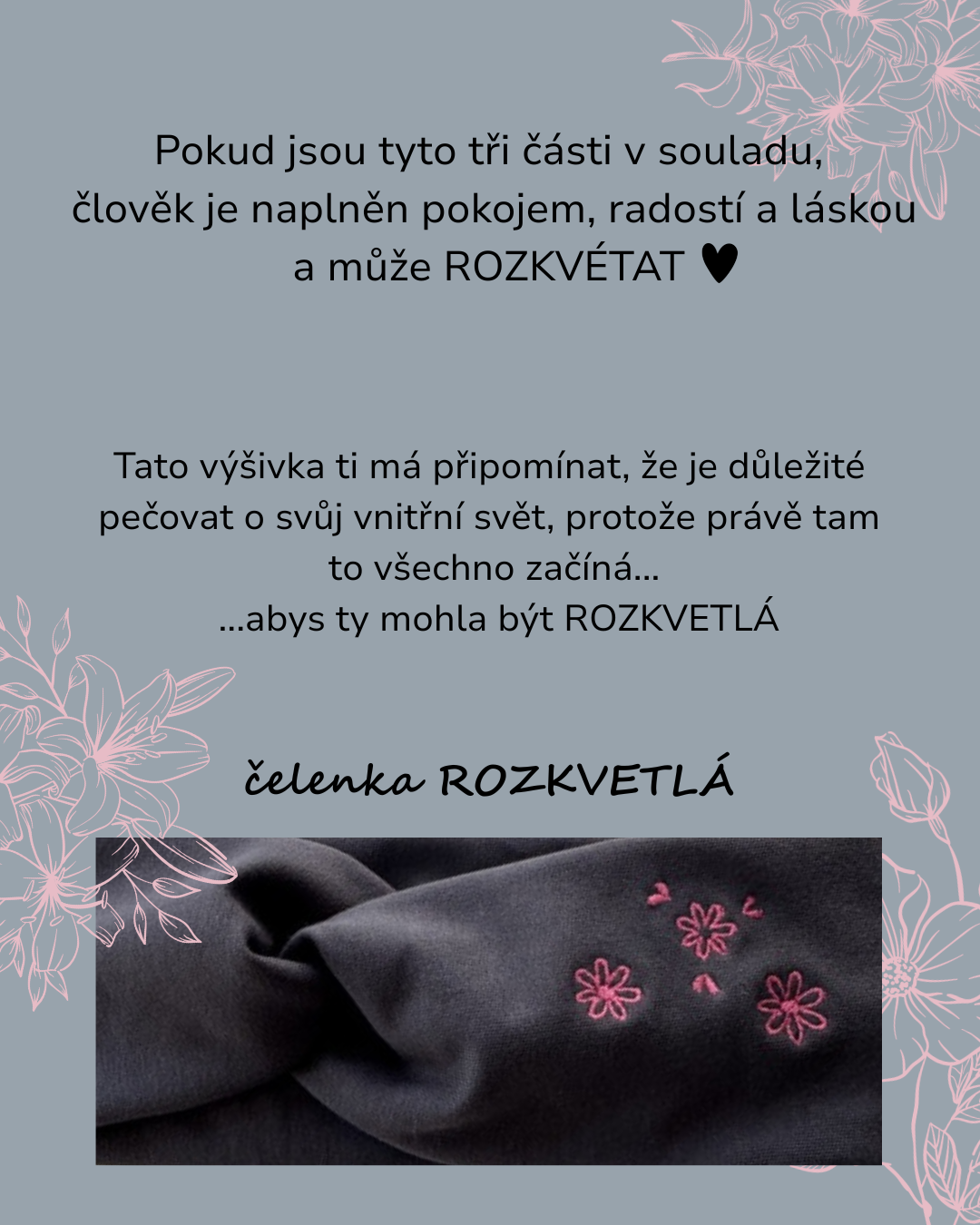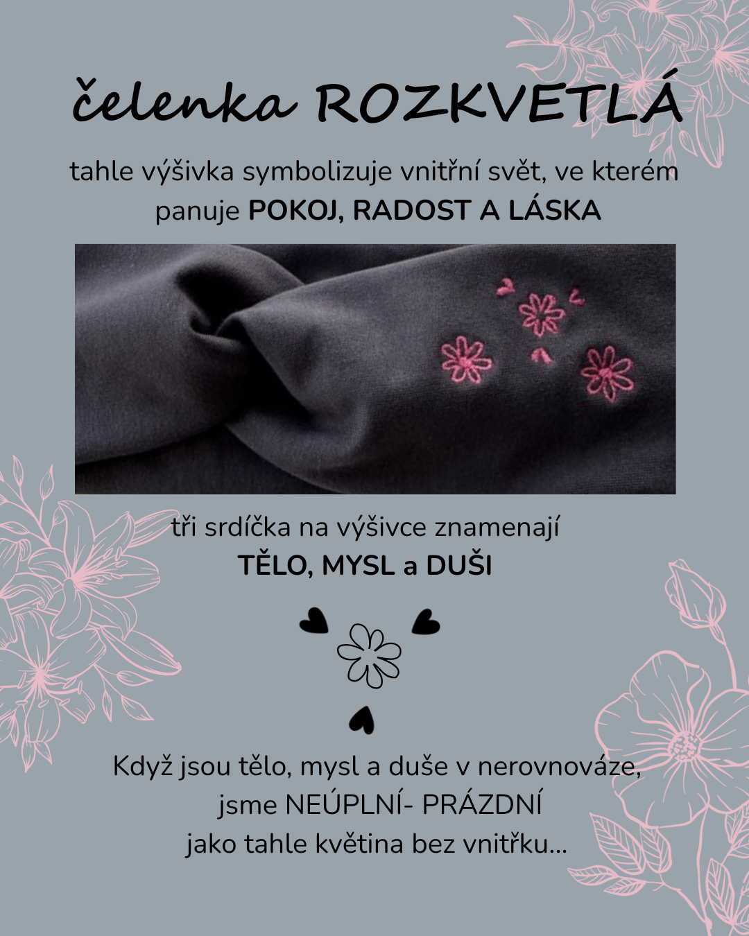 ROZKVETLÁ... tahle výšivka symbolizuje vnitřní svět, ve kterém panuje POKOJ, RADOST a LÁSKA ♥