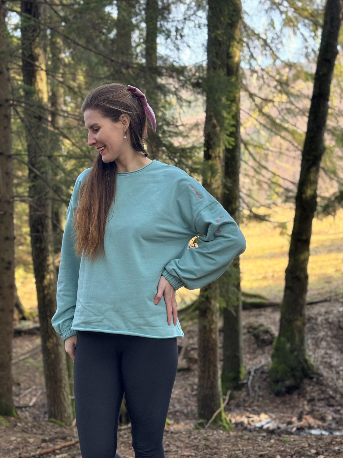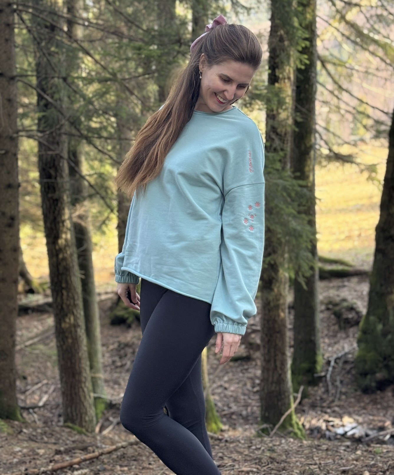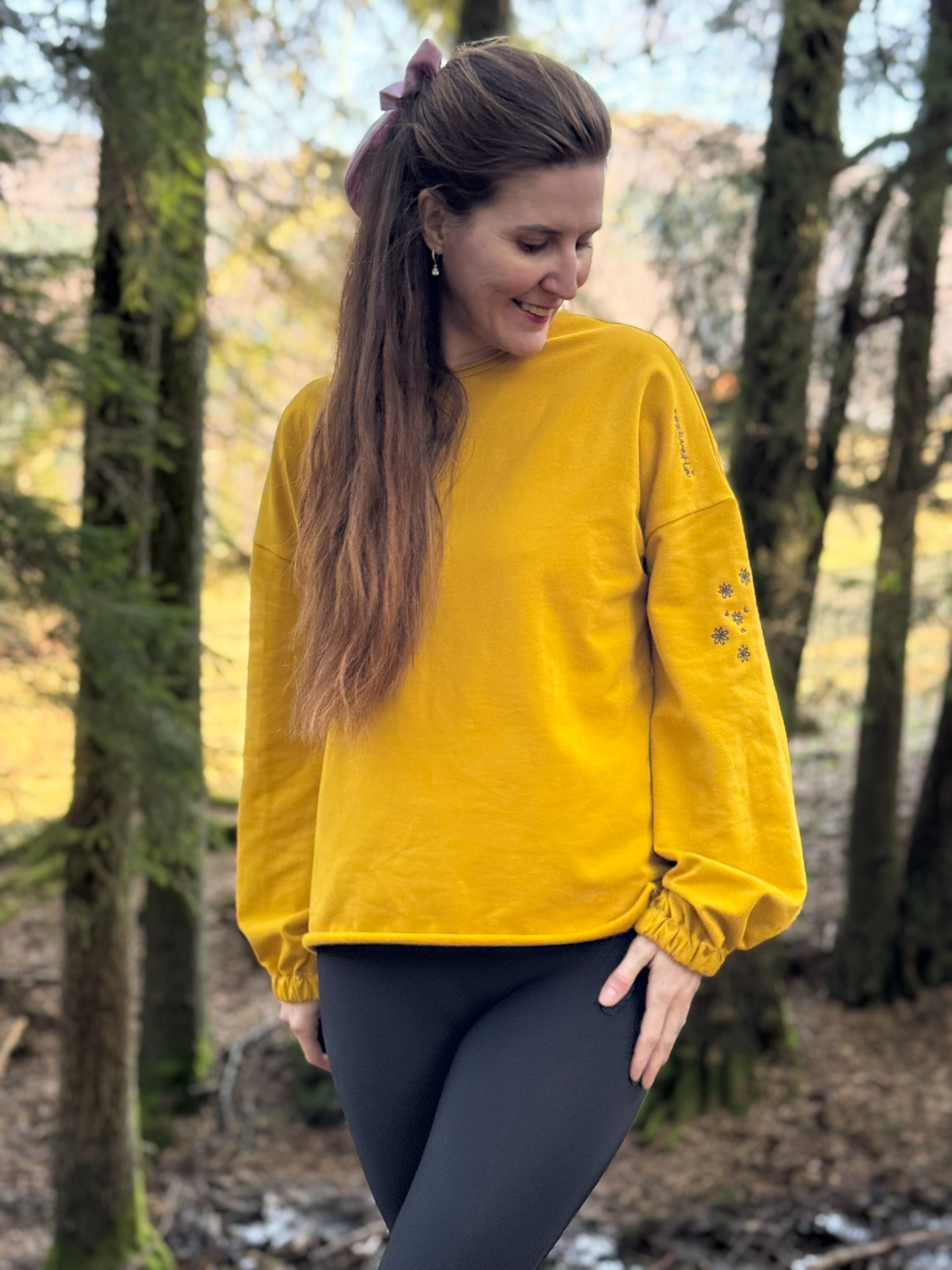 - volná mikina, se širokými rukávy staženými do gumičky